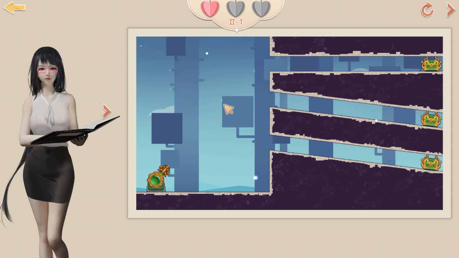 作为大师和至尊恶魔,你可以要求女孩为你做点什么。例如,掀起裙子或以性姿势站立。游戏有许多场景。胜利点数是执行某些操作所必需的。要做到这一点,你需要解决谜题并通过关卡。阶段是一个二维平台游戏,所有物体都在物理中移动。你需要解决空间谜题才能到达涉及女孩的场景。图形以动漫风格制作。