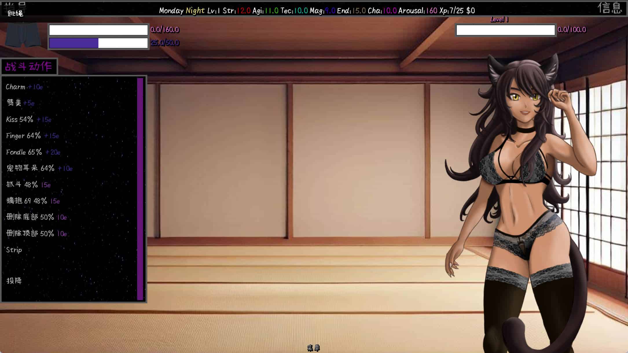 该游戏是基于文本的,带有角色的 2d cgs。游戏的基础是性战,您将与试图脱掉她们的衣服并让她们在您面前射精的女孩战斗。您还可以访问他们的世界,您可以更多地了解他们并进行各种活动来提高自己,更接近女孩,有时最终会在他们的世界中有所作为。但是不要觉得太安全,这些游戏似乎还有更多内容,这取决于您去发现,您自己的生活可能取决于它。