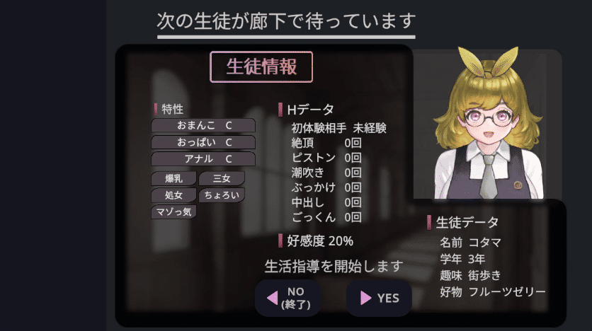 游戏中,随机生成的学生会来到理事长室。这些学生中可能会出现扶她、喷乳、甚至亚人等特殊角色。玩家需要将学生的行为与校规进行比对,通过指出违规行为来推进故事发展。