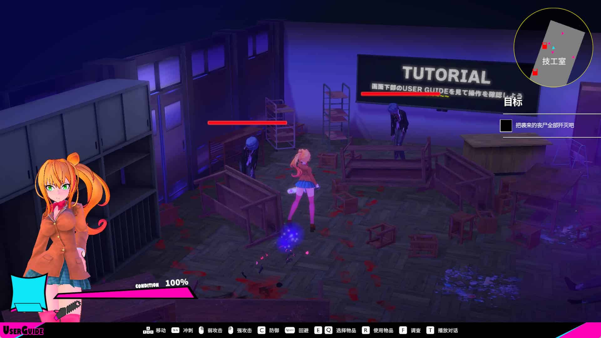 全3D進行,有過場動畫,支持手柄,操作女主從僵屍化的校園裏逃生吧!遊戲內容: