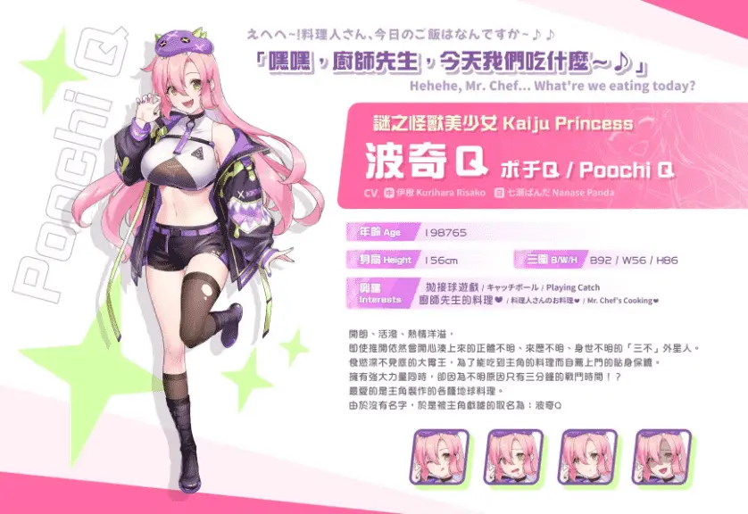 游戏内容游戏中玩家将扮演被通缉的主角,一边得想办法证明自己的清白,一边为了完成自己的究极菜单进行旅行。然而因为遭到通缉的关系,无法正常采购的食材,只能透过探索未开发星球来取得,幸运的是---主角身边有着强大的保镳。只是主动上门的谜之怪兽少女虽然强大,却有着越使用力量就越容易饥饿的弱点。为了保证打退银河警备队的战力,以及完成怪兽少女寻求「地球美食」的心愿。游戏中玩家需要指挥怪兽少女对未知星球进行探索,搜集食材带回飞船让主角研究,最后用外星食材重现地球料理的口味。而在相处过程中,主角也将与怪兽少女互动培养好感,在更加亲近的同时了解她身后的秘密。同时别忘了抓捕陷害主角的前同伴,而在这过程中,主角也将面临银河警备队的追捕以及探索星球时当地生物的攻击。怪兽少女越吃越强,搜集食材、烹饪料理强化她,击溃眼前一切的阻碍,迈向美好的未来吧!游戏特色身临其境的养成互动轻小说式主线,引人入胜的故事剧情丰富多变的纸娃娃更衣系统更强、体位更多的动态H模式时间管理系统食谱搜集与越吃越强的独特料理系统星球探索系统特摄风格的怪兽Boss战《怠惰的怪兽公主不想工作》同世界观续作