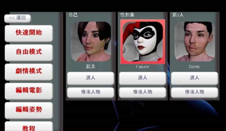 你可以随意定制男主女主,女主的各个部位都能自己动手还有各种姿势,使用各种奇怪的的道具,甚至可以用这个自己做动画。