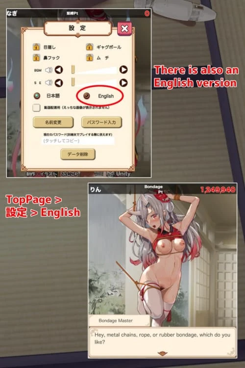 最初衣服会逐渐脱落,随后逐步升级为绑缚、拘束、潮吹、乳头责玩等玩法。