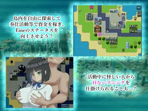 通过完成志愿服务活动可以获得报酬,用赚取的资金在岛上各处商店购买能力提升道具,强化Eine的能力值,以此为目标推进游戏。