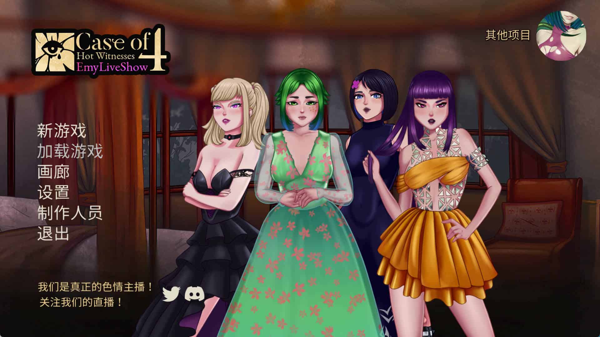 艾米直播秀:四位性感证人的案件是 (EmyLiveShow: Case of Four Hot Witnesses)一款带有骰子技能检定机制的情色视觉小说。