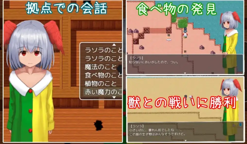 作品概要这是关于主人公与一个处境稍显悲惨的女孩一起在无人岛上生活并增进感情的RPG游戏,最终发展到亲密的H场景。在野兽横行的岛上,玩家(名字可以更改)将与偶然救助的少女合作,目标是深入岛屿的内部。探索新地点、发现新植物、战胜凶猛的野兽以及在基地的对话等,岛上的一切活动都会加深两人的关系。
