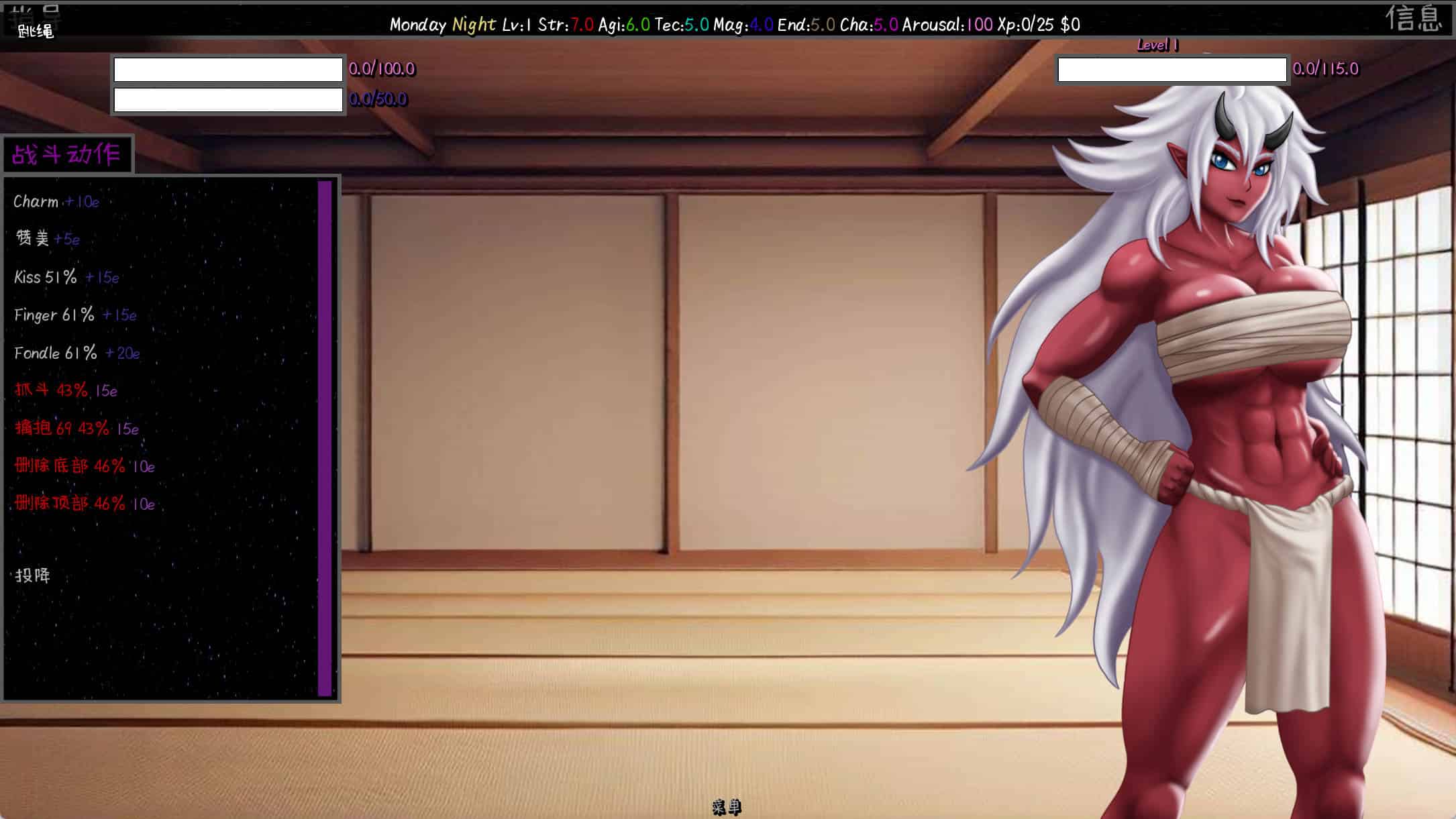 该游戏是基于文本的,带有角色的 2d cgs。游戏的基础是性战,您将与试图脱掉她们的衣服并让她们在您面前射精的女孩战斗。您还可以访问他们的世界,您可以更多地了解他们并进行各种活动来提高自己,更接近女孩,有时最终会在他们的世界中有所作为。但是不要觉得太安全,这些游戏似乎还有更多内容,这取决于您去发现,您自己的生活可能取决于它。