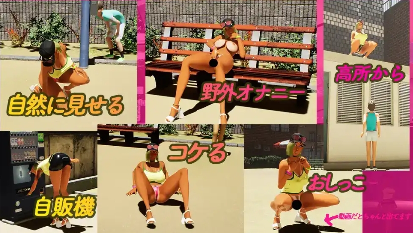 ■难度随时可以调节简单难度就像拔作一样简单。真实难度就非常困难,在光天化日之下自慰之类的会马上把所有人吓跑!脱下衣服,摆出一个性感的姿势,让周围的男孩子兴奋起来吧!然后看准时机「勾搭」!当显示OK的时候就可以进入色情部分了!从自慰到尿尿,即便只用露出部分就已经够撸个痛快了!尽情欣赏这个在男孩子们众目睽睽之下自慰的只属于你的伙伴吧!让被勾搭的男孩子跟你的伙伴做色色的事情吧!我们准备了92种基本色情动画,算上其中的差分和自定义服装的话,可以说有无限种可能性!!从「手淫」到「抱起位」,你可以在「性奋公园」体验各种各样的场景!还可以去勾搭的孩子的家里做爱!