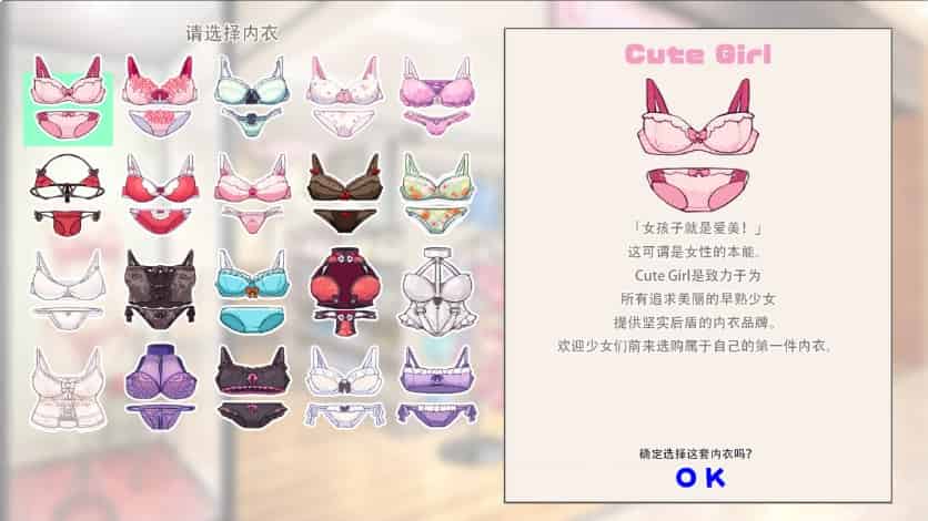 玩家将扮演一家高档女士内衣店的店员,倾听女顾客的各种要求,并为她们搭配最适合的内衣。