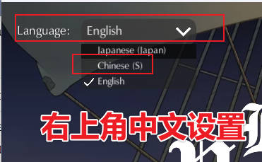 进入游戏,左上角点击选择Chinese(s)即可