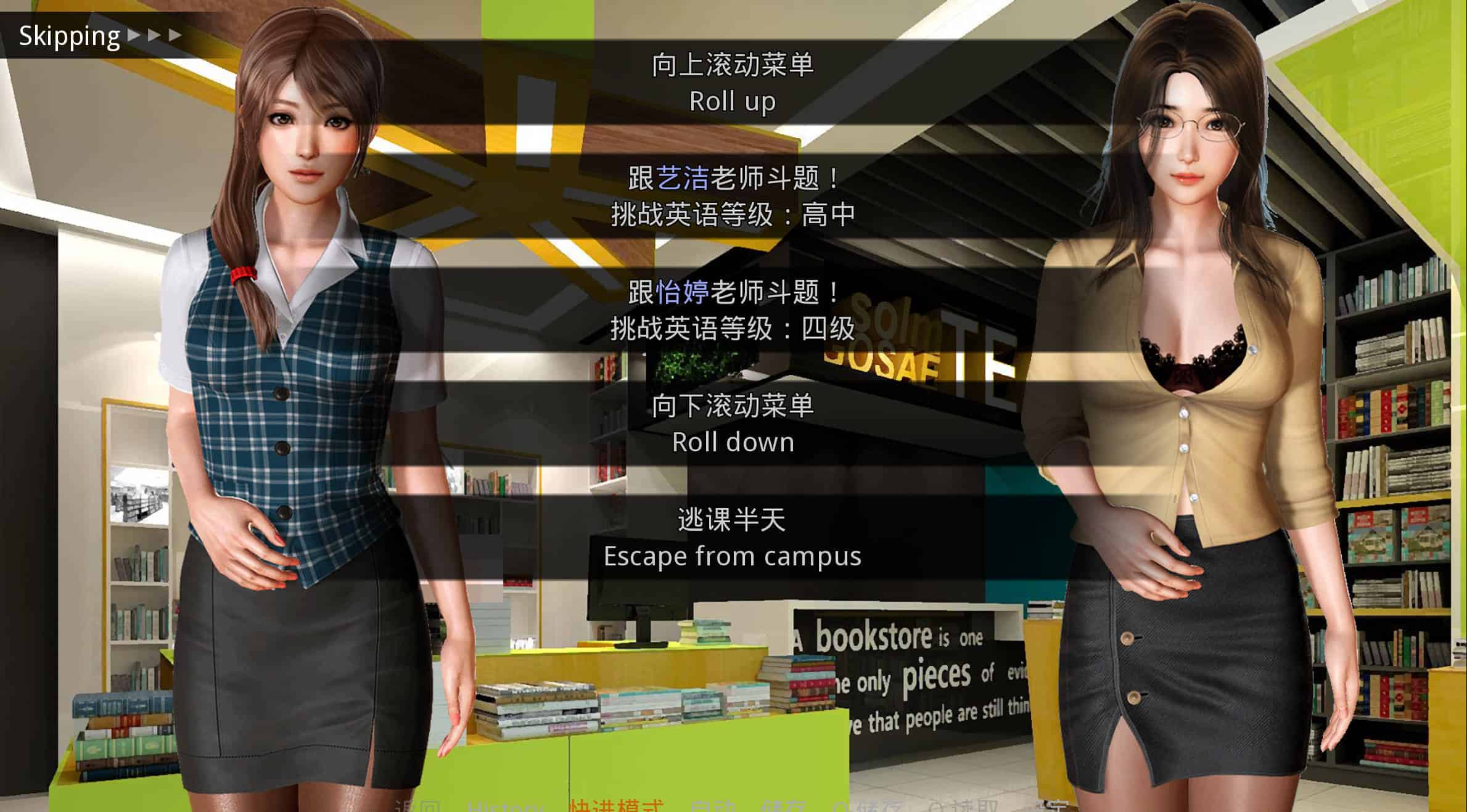 你需要通过和学校的多个黑丝女老师进行答题游戏,通过赢得更多的题目来博取老师的好感