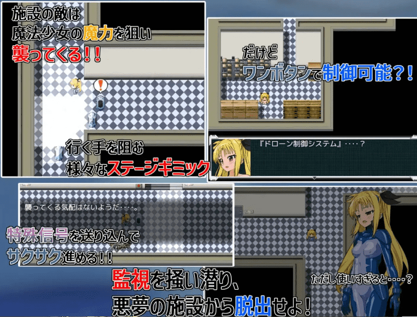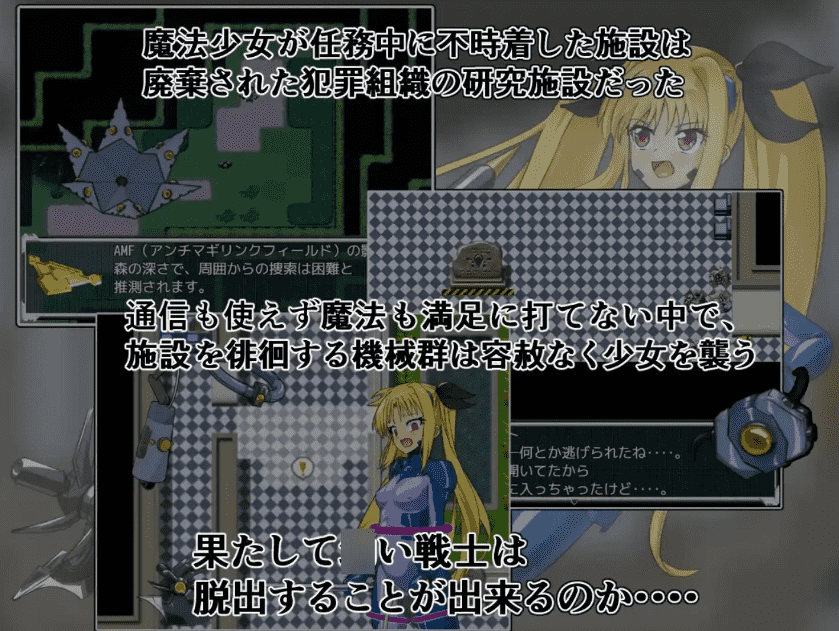 在一次任务中,一个魔法女孩被神秘袭击击落,坠入森林。由于无法与外界沟通,她独自一人来到了一个神秘的废弃地下设施。躲避漫游机器的监视,逃出设施,返回家园!这是一款逃生RPG游戏,主角是《魔法少女Zurical – 0 》中的凯特。