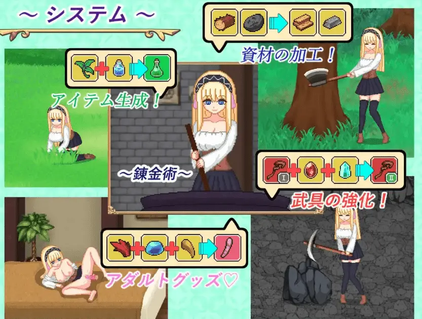 主人公妮娜是一名炼金学徒,向往城市生活、她离开农村,前往阿莫尔王国。在那里,她遇到了 “艾丽西亚公主 ”和 “女仆罗莎”、她们许诺,如果她在王位继承人的试炼中合作,就会得到[宫廷炼金术士]的职位和头衔作为奖励,她欣然同意合作。