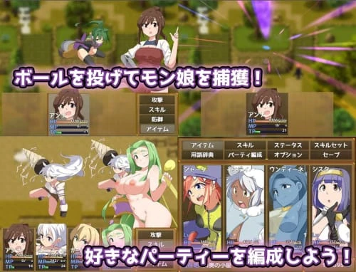 捕捉野生的魔物娘(エロ娘),通过升级培养,挑战魔物娘联盟——这是一款简单易懂的RPG。