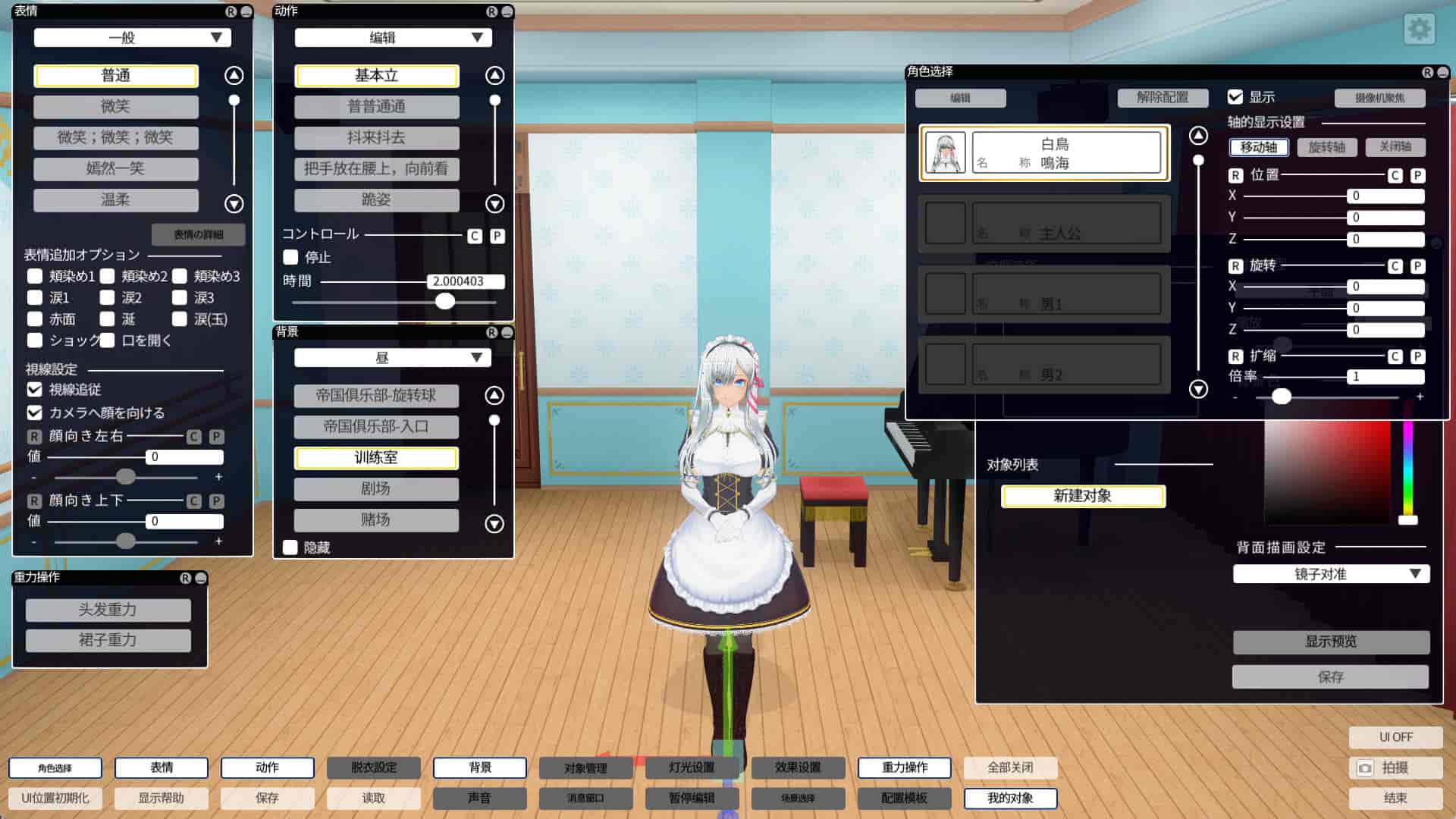 2. COM3D2.5比起COM3D2在游戏中支持一个叫做CR EditSystem的新版本捏人系统,与COM3D2本身的捏人系统是相互独立但是可以随时切换同时存在的,可以在游戏内选择这两种不同捏人模式的模型,男女都包括,如下图(3.0就是新捏人系统的人物了):