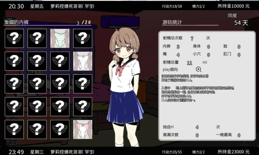 开局建议选打工仔吧,不然好感度很难刷玩起码玩6小时起步,好感度非常难搞需要很久才能操到妹妹!亲测了3个小时没操到兄弟们自己上吧———-作品紹介慢慢地,將距離一點點縮短。和妹妹一起生活的日常生活模擬。以升學為契機開始獨居的你的公寓裡妹妹也要一起住進來了。突然開始的妹妹生活。你會成為怎樣的哥哥?◇◆作品的特色◆◇■有妹妹的生活你是哥哥,和妹妹一起生活。上學、上班,也可能是每天都在家無所事事。在這樣平凡的生活中,與妹妹進行身體接觸。偷看妹妹洗澡,或者在睡著的時候偷襲。對於想偷妹妹內褲的人,也許非常值得推薦。並沒有什麼困難的操作,請輕鬆地開始遊玩。■慢慢地,可以做的事情在一點點增加一開始不能被發現……但是慢慢地能做的事情會增加。兩個人一起玩遊戲,在休息日出門玩,在睡覺時惡作劇,一起洗澡…如果花一些時間的話,不久就可以做H的事情了吧。——■妹妹觸摸2.0系統裝載新的觸摸系統實裝了“妹妹觸摸2.0”2.0這個系統是什麼呢?可以一邊用左手愛撫著睡著的妹妹的乳頭一邊看著內褲自慰在插入時也可以一邊玩弄乳頭一邊接吻。根據PLAY的不同,在插入過程中受到被玩弄陰蒂而高潮的妹妹的小穴的刺激而射精…之類的場景也許會出現。■哥哥製作系統OMS 搭載製作專屬於你的哥哥的系統(OMS)“學生”“自由業”“上班族”“廢柴”準備了體驗各有不同的哥哥。請享受你喜歡的哥哥。■爆發的妹妹追求真實感的結果是,妹妹會爆發哦。